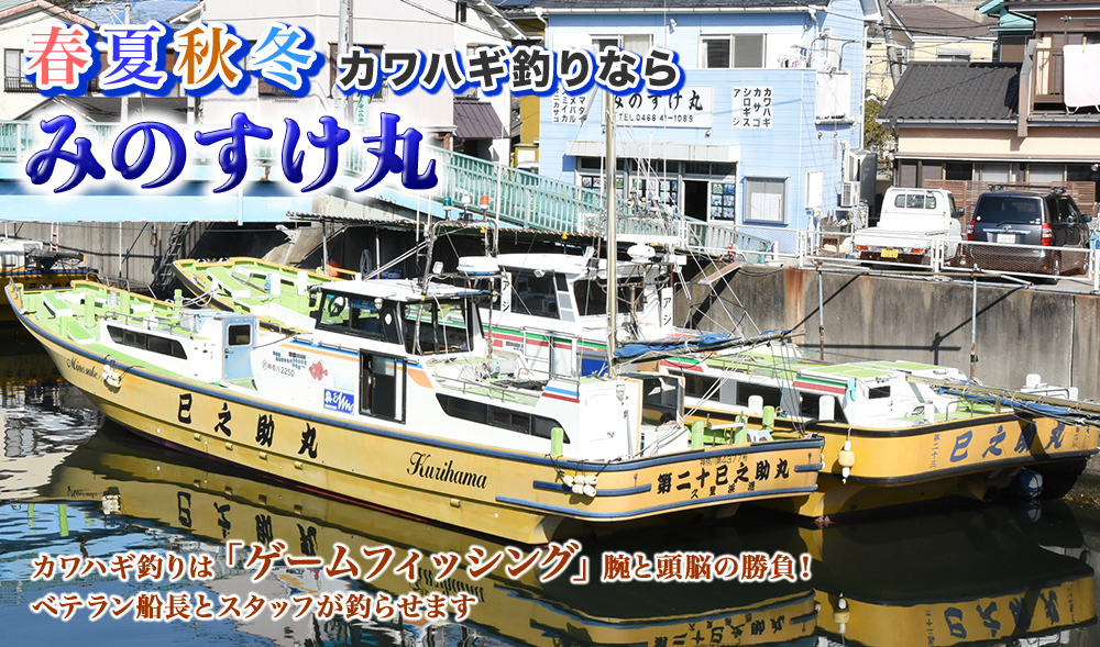 京浜急行「京急久里浜駅」下車 → 「東口出口(久里浜港方面)」を出て、駅前を左折・直進 → 「久里浜四丁目」の信号を右折・直進 → 「夫婦橋」を渡って川沿いに左折 → 「みのすけ丸事務所」