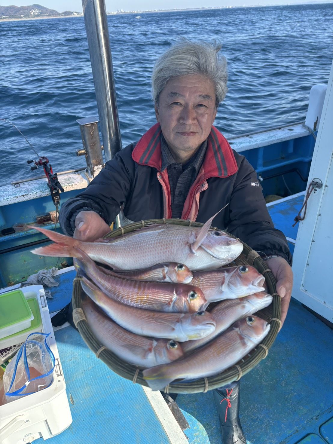 | マダイ五目 | 0.6〜1kg | 0〜3枚 | 本日もマダイでした。 今日は朝から潮早く釣りづらかったですね。 それと棚は上からです。 下からですとかビシを落とさないようお願いします。 その後アタリが遠くなります。 南西風の為早上がりでした。 | |