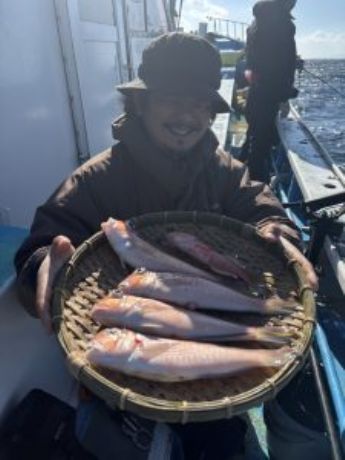 | アマダイ | 20〜36cm | 0〜8尾 | 本日のアマダイはいい方へ予報が外れて今朝は北東の風でした 朝イチは凪も良く、潮は流れずでしたが朝からアマダイの顔見れました 風の心配もあったので、浅場をメインに回り、どこポイントでもアマダイはポツリポツリと顔見せてくれました 11時早上がりでしたが、トップは8尾!! 他のお客様も3〜5尾程度を平均して顔見れましたよ |