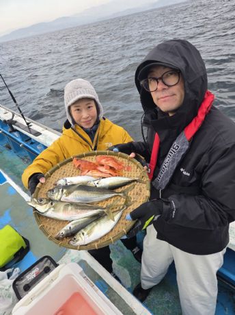 | マダイ五目 | 0.6〜2.0kg | 0〜2枚 | 本日もマダイ船は好調でした。 が、朝のうちはアタリがありましたが、後半はアタリ遠くなってしまいました。 それでもほとんどの方が顔見させてもらいました | |