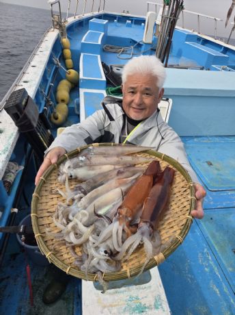 | イカ | 24〜40cm | 2〜10杯 | 本日のイカ船はスルメイカがメイン 朝からほぼ帰り際までスルメイカが釣れましたよ 反応は相変わらず薄く、空振りやバラシも多数ありましたがトップはツ抜け10杯!! 次頭も8杯!!坊主なし なんとか皆様お土産は確保できました… 帰り際最後の数投でヤリイカが混じり、反応もモヤモヤ 最後の最後で反応固まったみたいです |