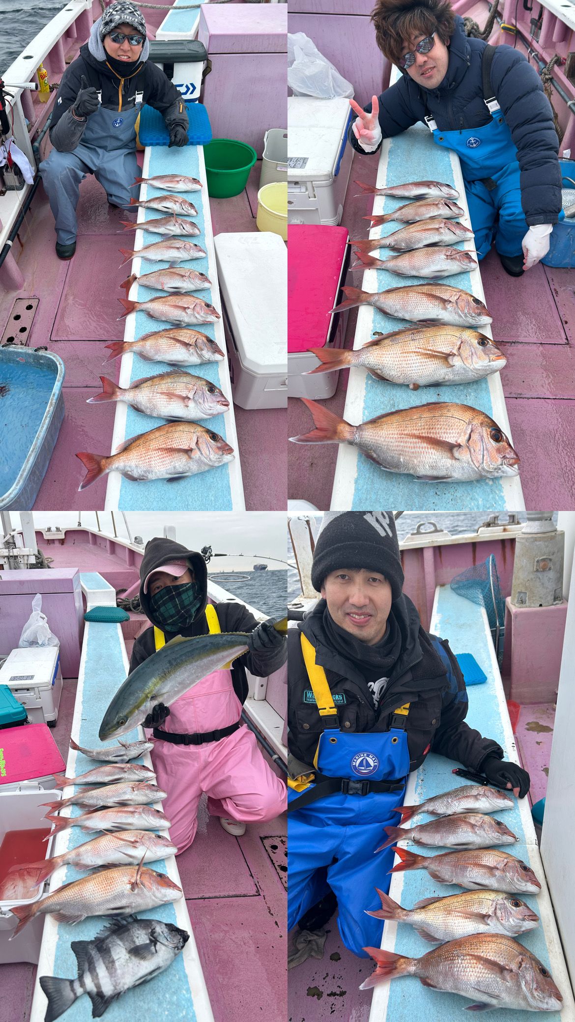 *マダイ乗合船”8名全員ゲットでトップ5枚” 船中25枚でした♪ 土日でしたが平均に釣れて良かったです!