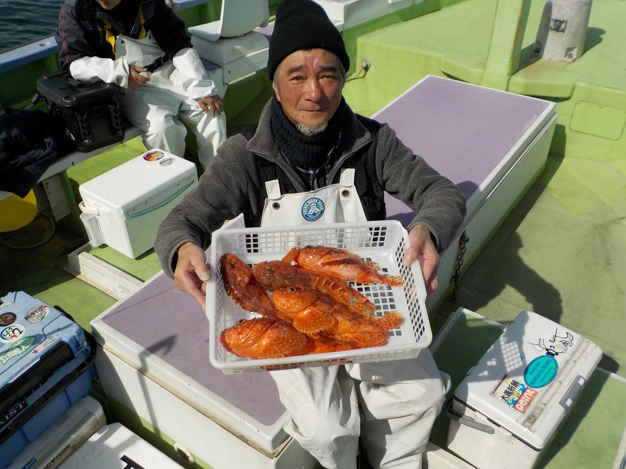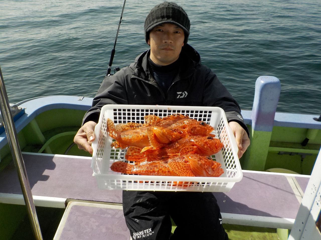 海上は朝からベタ凪で暖かい絶好の釣り日和でしたが、魚の機嫌は悪く底潮が冷たいのか?ドンコがいつもよりも釣れて、肝心のオニカサゴは開始から2時間で2尾しか上がりませんでしたが…
