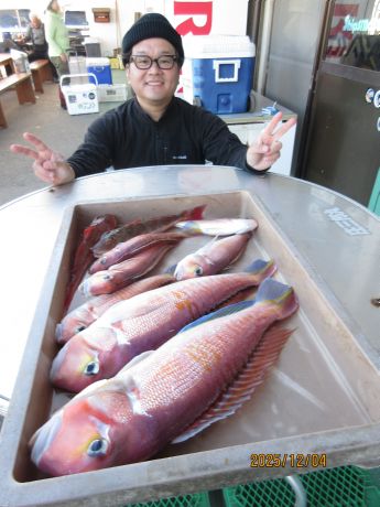 【ライト・アマダイ船】6時30分出船・料金11.000円(オキアミ付き)(土・日・祭日はご予約をお願い致します。平日はご予約なしでも乗船出来ます。)・・片テン・40号・ハリス3号・2本針でお願いいたします・・・4日の釣果・・アマダイ、1−9尾、22−52p、最大、1.5s、白アマダイ、イトヨリ、カイワリ、オニカサゴ、イシモチ、ミシマオコゼ、交じり。
