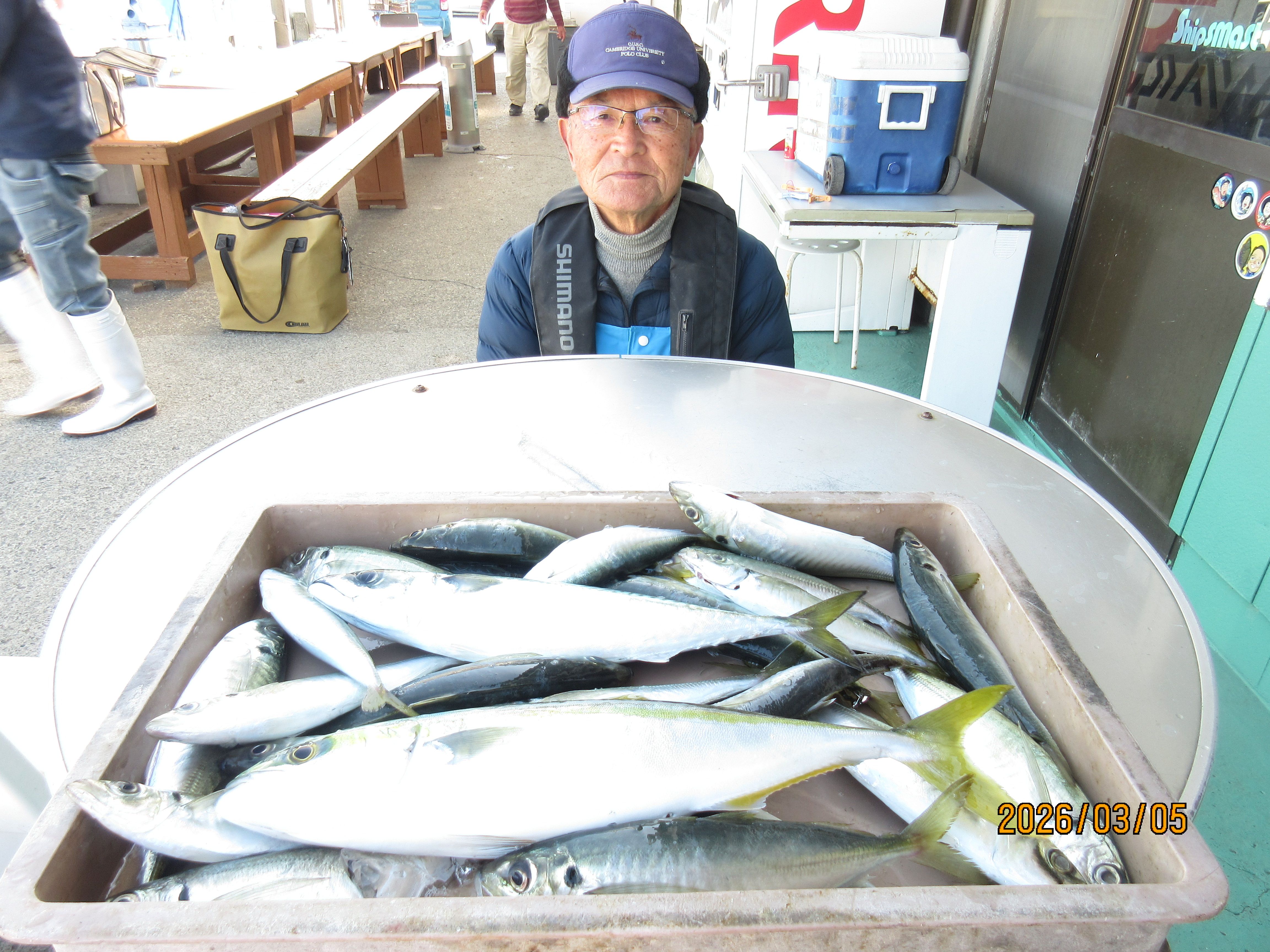 【ライト・五目船】6時30分出船・料金12.000円、(土・日・祭日は御予約をお願い致します。平日はご予約なしでも乗船できます。)・・・ウィリ−、ハリス2−3号、2本針、下針にオキアミを指す、オモリ40号・・・小魚が釣れれば、泳がせ・オモリ60号・・ジギング50−60g・・水深30−80m・・5日の釣果は、ヘダイ、0−3枚、イナダ、0−2尾、ハナダイ、アジ、10−31尾、カサゴ、サバ。