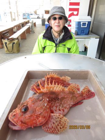 【オニカサゴ船】・6時30分出船・5日の釣果・・オニカサゴ、0−3尾、27−41cm、カサゴ、アマダイ。