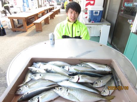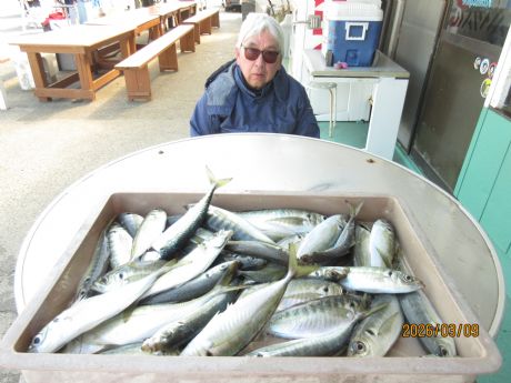 【ライト・五目船】6時30分出船・料金12.000円、(土・日・祭日は御予約をお願い致します。平日はご予約なしでも乗船できます。)・・・ウィリ−、ハリス2−3号、2本針、下針にオキアミを指す、オモリ40号・・・小魚が釣れれば、泳がせ・オモリ60号・・ジギング50−60g・・水深30−80m・・9日の釣果は、ワラサ、6.1s、アジ、7−33尾、カガミダイ、カサゴ、サバ。