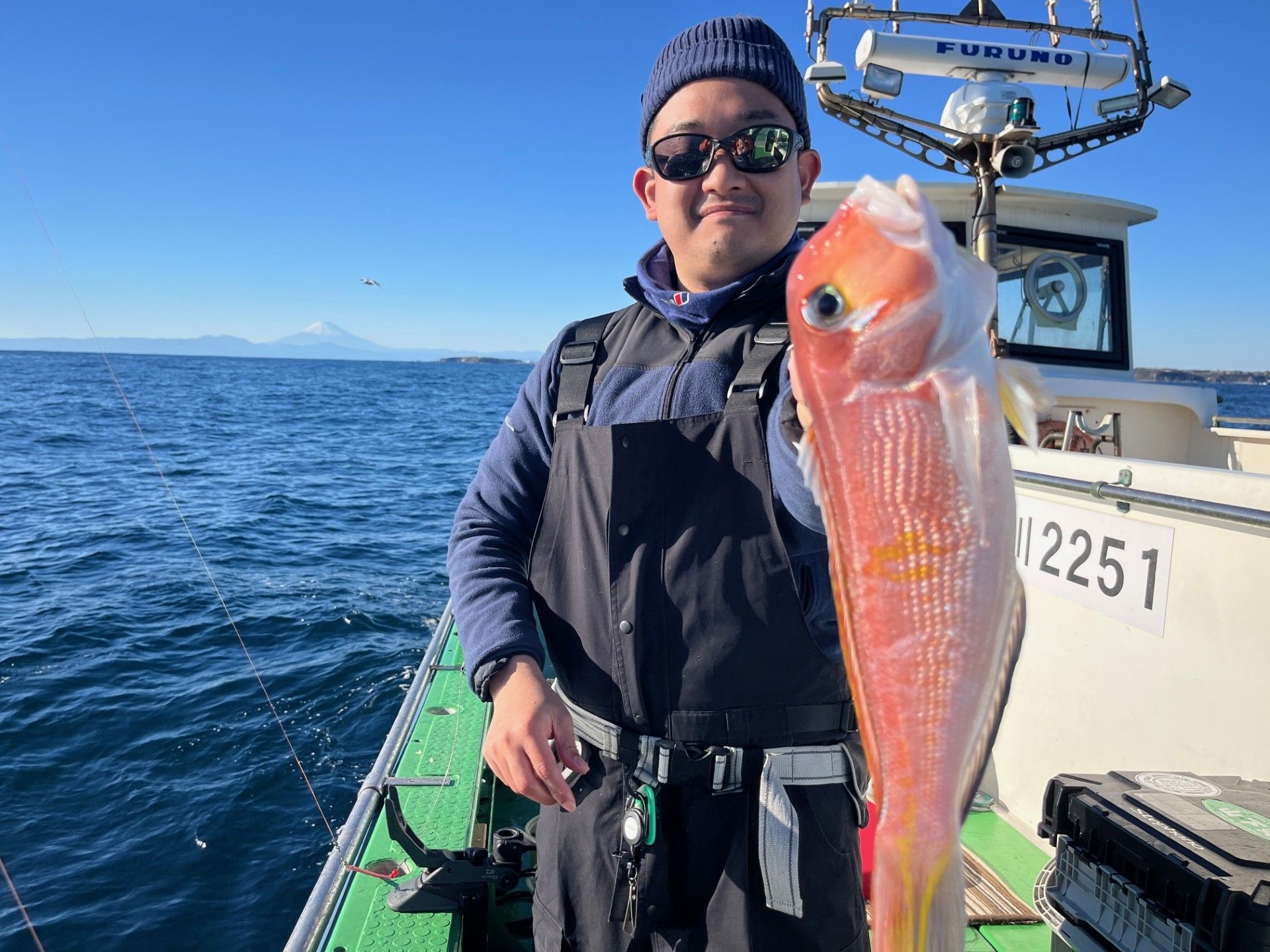 今日は昨日までの大風の影響でうねりが高く残っていたので、釣りやすい久里浜沖から開始しました。潮はあまり流れず最低限の活性と言ったところで、ポイントを転々と変えながら剣崎方面へ。うねりがあり、活性も無かったのでこちらはキダイが邪魔をしました。次第に底潮が効いてくるとキダイに混じり、アマダイが顔を出してくれましたがポツンっポツンで終わってしまいました。最後の方は底潮がちょうど良く流れ、手の合う方はアマダイ連発してくれてなんとか形になりました。竿頭は4尾で設楽さんでした。