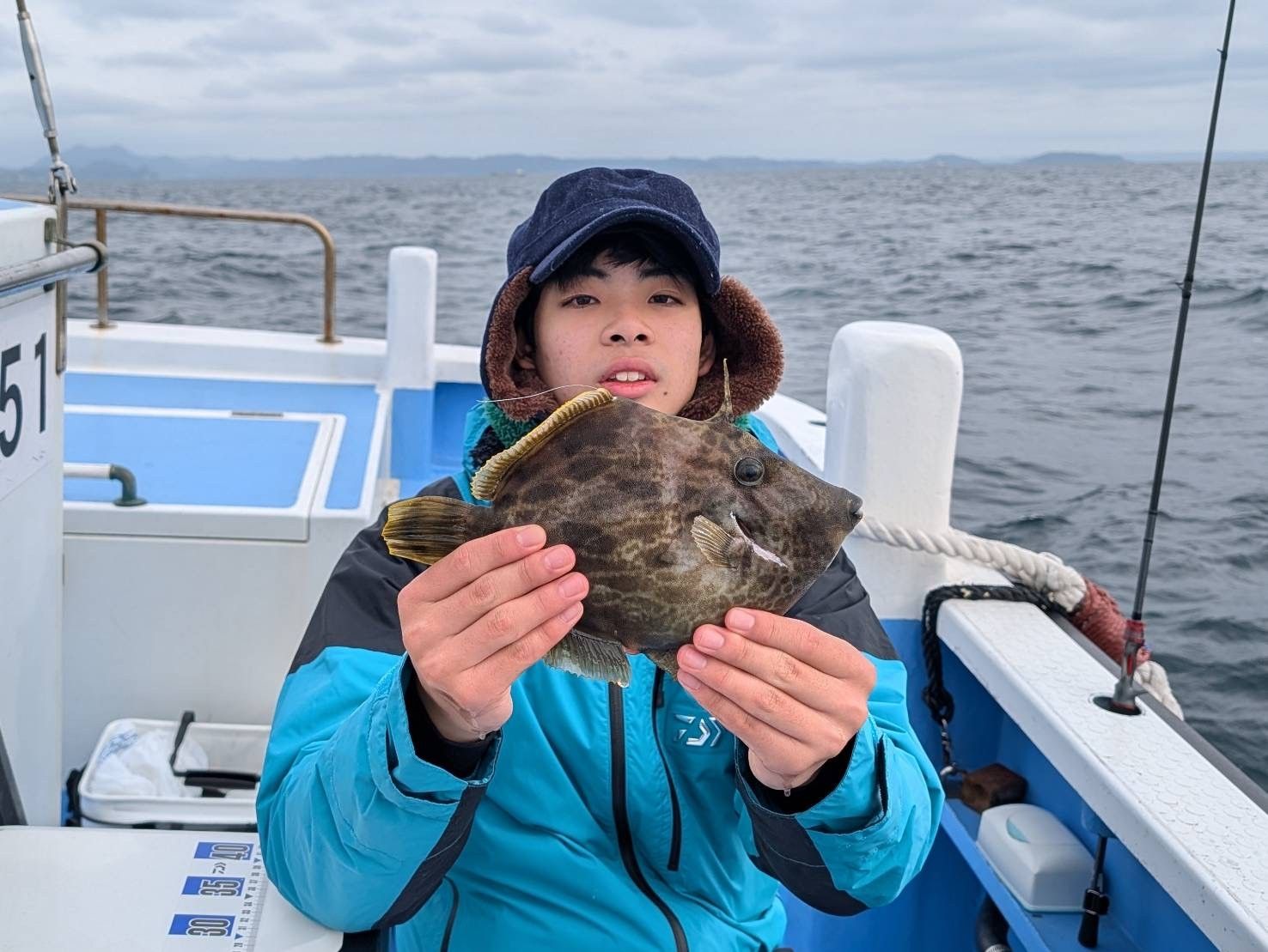 本日は久里浜沖から剣崎沖を広く探りました。水深は20〜40m。海水温13〜14℃、潮色は薄濁り。北風が強めに吹き、波も高く、やや荒れた海況。大潮回りで前半は下げ、後半は上げに転じました。潮の流れはおおむね良好でしたが、時間によっては少し速く流れました。風と波に悩まされる一日となりましたが、水温がやや高いポイントを意識して流しました。厳しい状況ながらも全員安打。トップ4枚が2名様、竿頭は東さんほか1名様でした。もうひと伸び欲しいところでしたが、最後まで頑張っていただきありがとうございました。