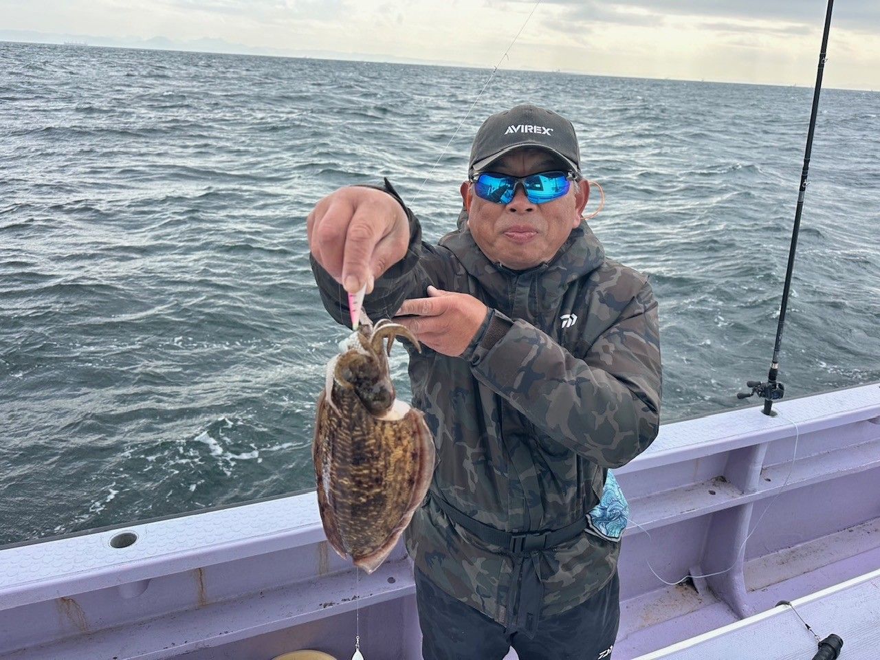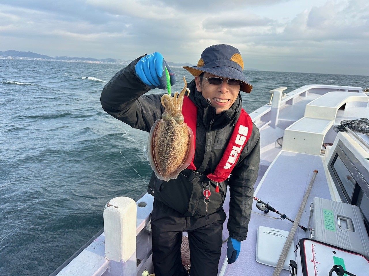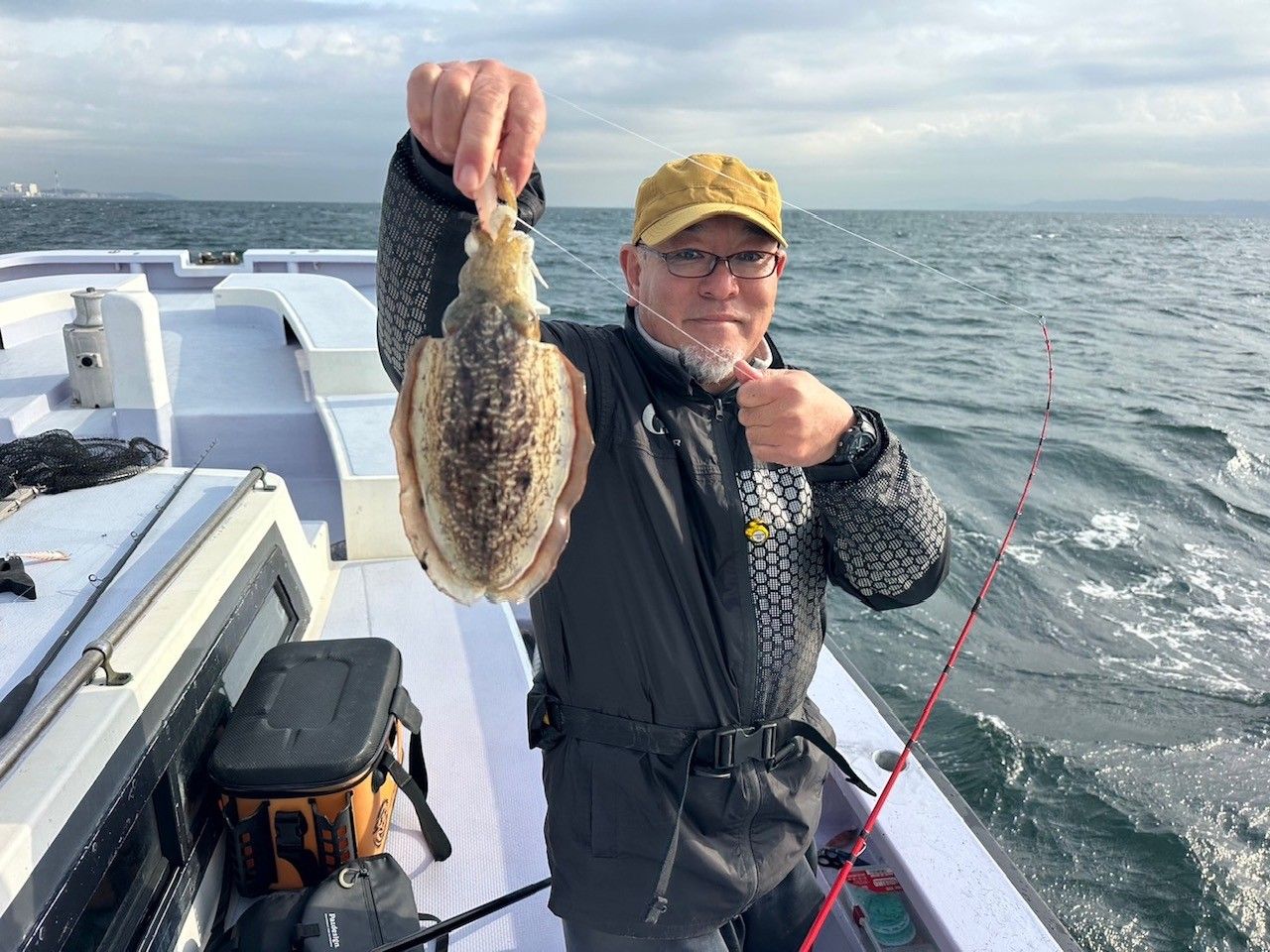 本日も朝から下げ潮が良く流れましたが、水温が下がってしまったせいか、イカの機嫌があまり良くなく、朝のうちはすぐにスミイカ釣れましたが、パッとしないので昨日同様点々と沖まで移動しながらの釣行でした。本日はマルイカの乗りも悪く数を伸ばすことができませんでした。竿頭は須藤さん、スミイカ2杯マルイカ1杯計3杯、次点スミイカ2杯でした。