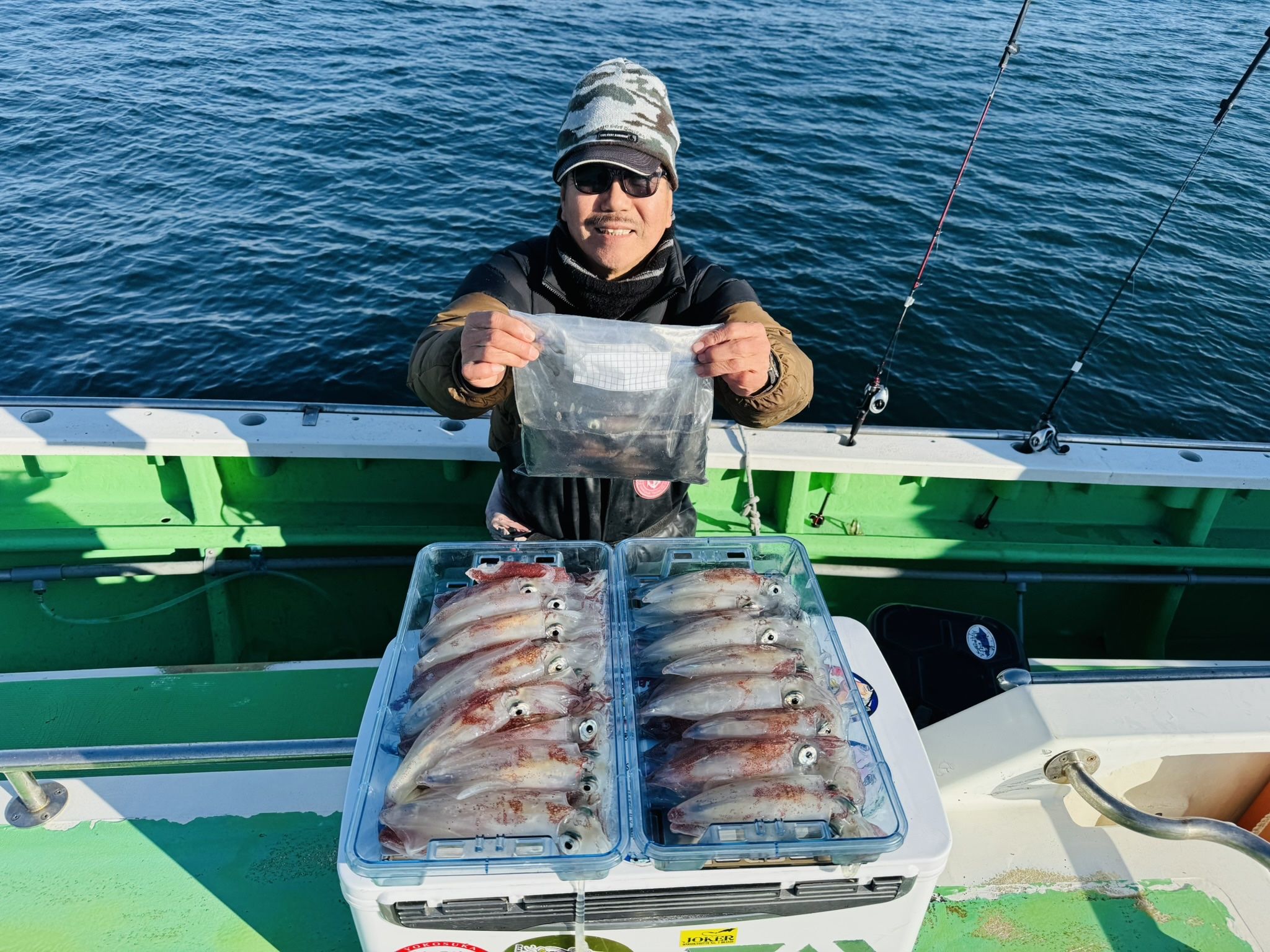 【2/2】試し釣りマルイカ・・・久里浜沖〜剣崎沖トップ47杯、2番手22杯、平均サイズが良かったです。