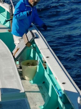 | 仕 掛 | ◇片天秤コマセ釣。 ◇ハリス:6〜8号・3〜4.5m・2〜3本針。 ◇リール:電動リール・ライン300m。 ◇刺餌:沖アミ(イカ、サンマ切身等は各自持参下さい。) ◇コマセ:沖アミ(2kg)は本宿用意。 ◇水深:170m前後 |