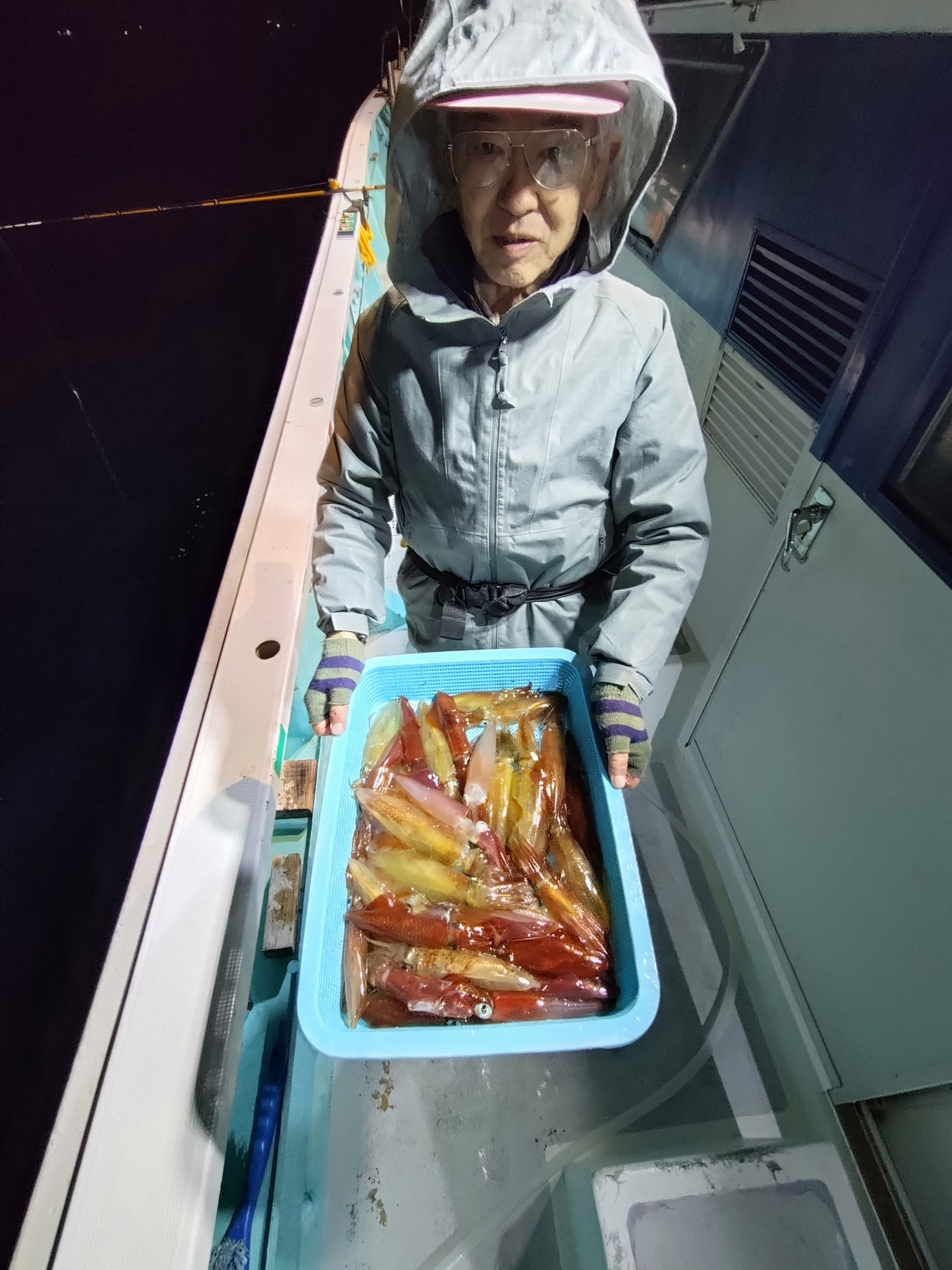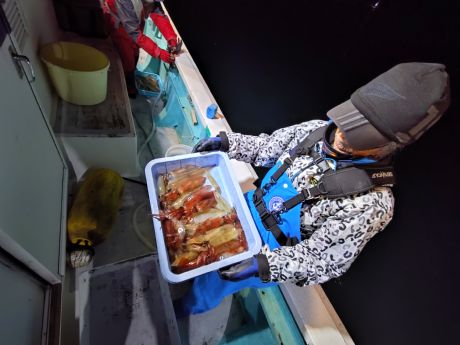 | ■18日 〔夜〕 | ■BIG弁慶主体に◇皆30杯超と活発でした。 ◆日没直後から徐々に触り始めて時折◇ヤリイカや◇スルメも。 ◆今後のイカ釣行は寒気が下り時化海況となる ◆凪海況の〔湾内夜〕に◇〔石花海〕から移行です。 |