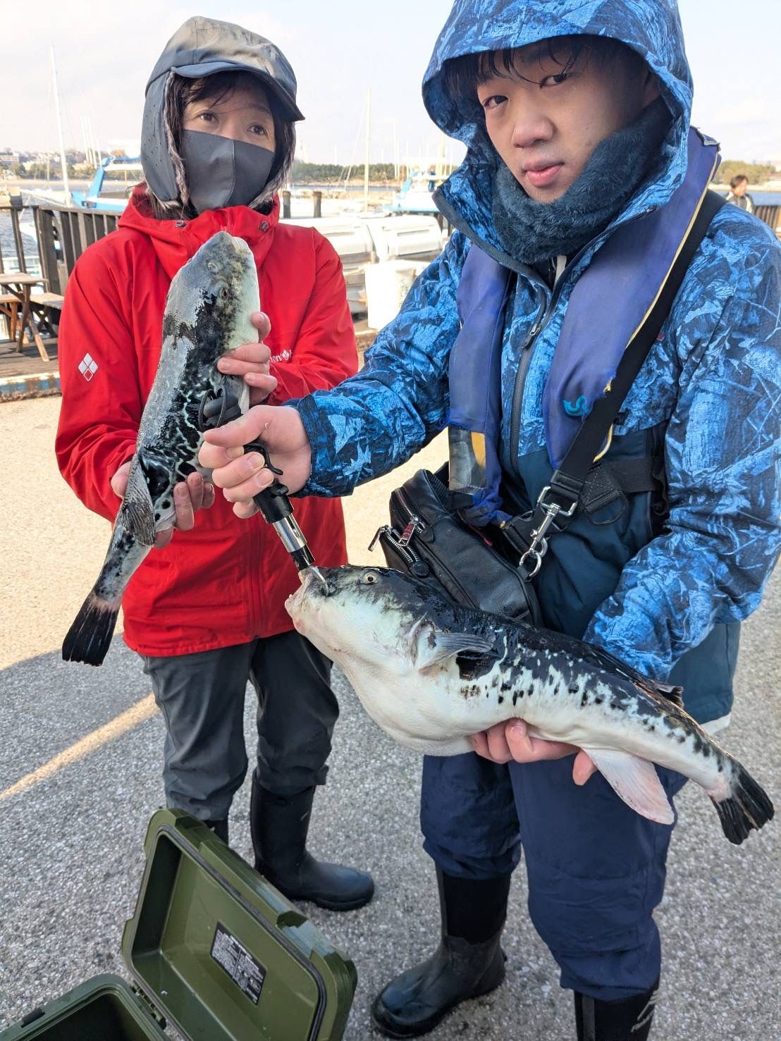 | コ メ ン ト | ※※ご希望の方には船長がレクチャーいたしますので、お声がけください♪♪※※ ※かっとう10号とくわせ針を場所により使い分けます。場所によってはかっとう禁止の場合があります。 ※くわせ針のみで釣りをする場合は動付きのようにやりますのでオモリは15号を使います。 詳細と釣果写真は『ぎょさんブログ(さとし船長の釣り日記ブログ)』に随時アップしております♪ ショウサイフグの処理について⇒身・白子のみのお渡しとなります。 サバフグとクサフグについて⇒さばき処理はしないため海に逃がしてください。 |