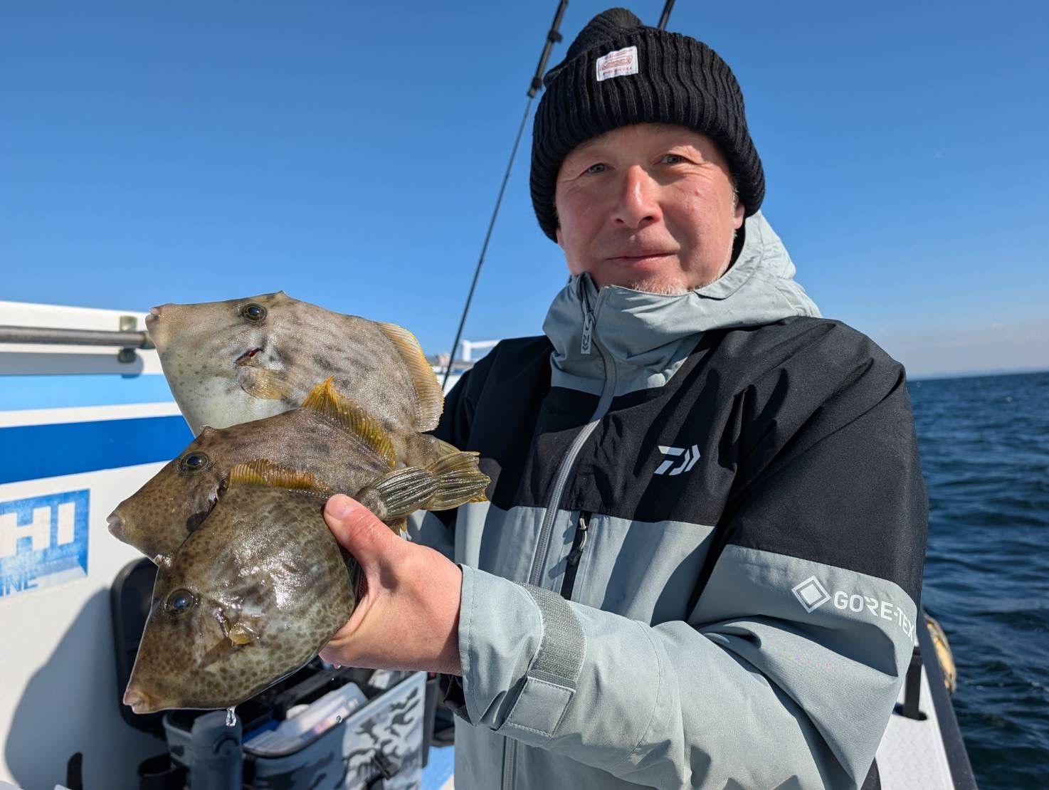 久里浜沖から下浦沖へとかけて出船してきました。海の状態は北風が少し吹くくらいで、海面も穏やかな凪。絶好の釣り日和になりました。潮は適度な濁りが交じるウス濁りで、海水温が低いながらもカワハギがバタバタと遊んでくれました。針がかりが悪くて途中でバレてしまうとの声もありましたが、驚いたのはその食い気の良さです。ダブルで釣れたり、今日はなんとトリプルで釣れるシーンもあり、船の上は大盛り上がりでした。トップ25枚、次頭18枚と、この時期としては文句なしの好成績です。型も中型から良型が揃い、皆さん良い引きを楽しめたのではないでしょうか。竿頭の菅澤さんは、さすがの安定感。素晴らしい腕前で次々とカワハギを釣り上げていらっしゃいました。お見事でした。本日もご乗車ありがとうございました、またのご来店を心よりお待ちしております。