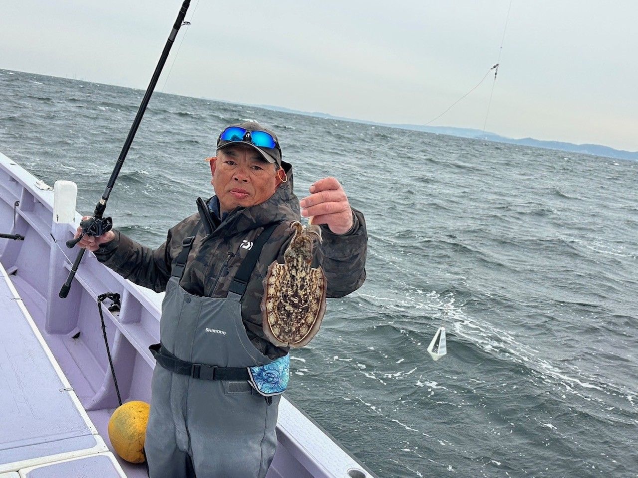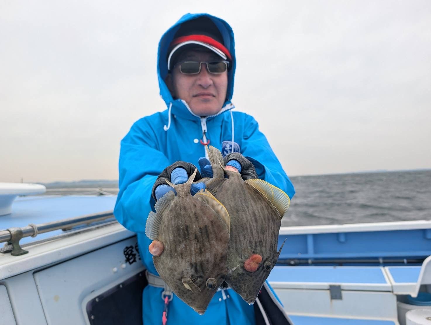 【14日・カワハギ】久里浜沖〜下浦沖、20〜30m・水温12℃、水色は薄濁り