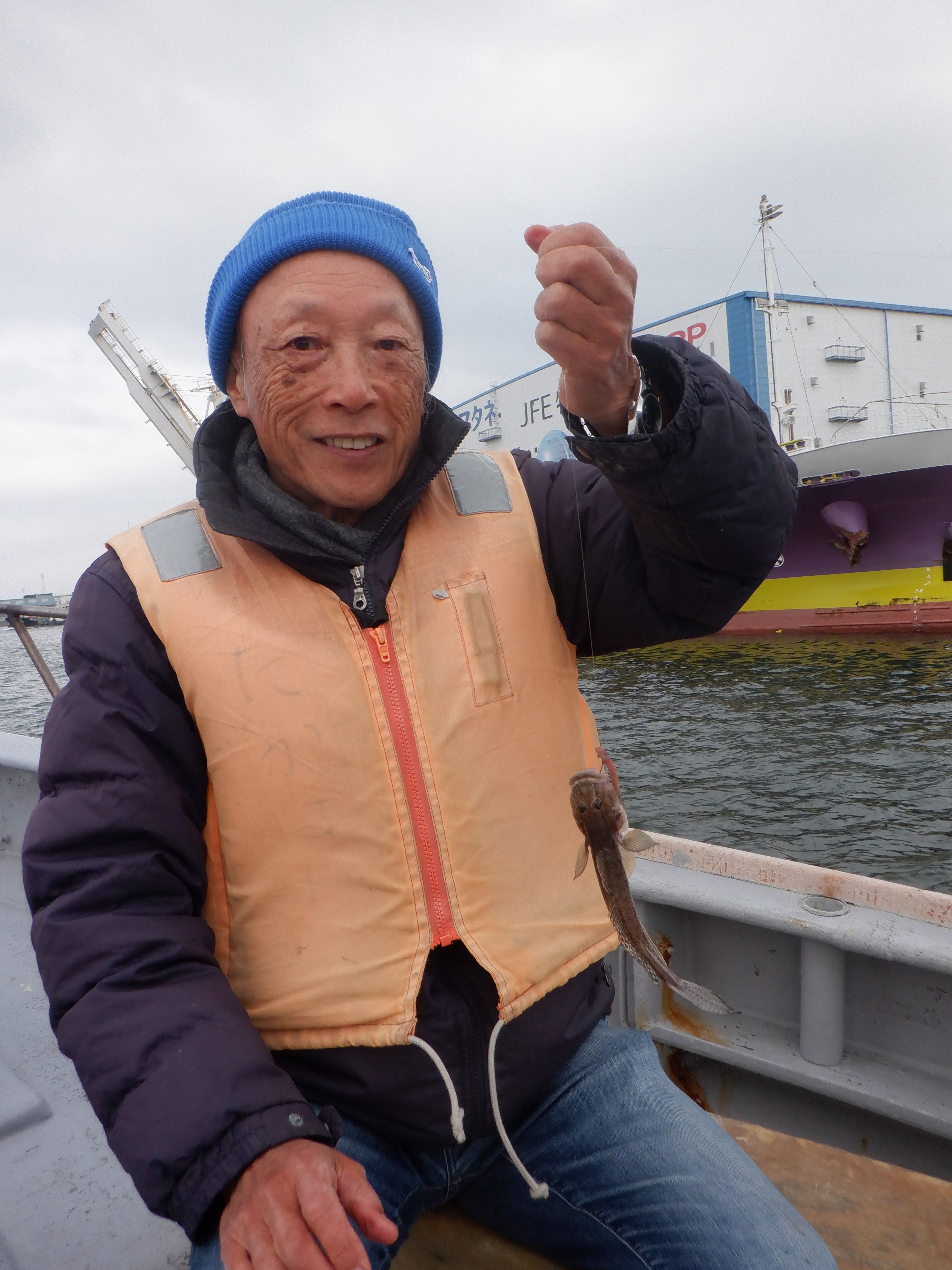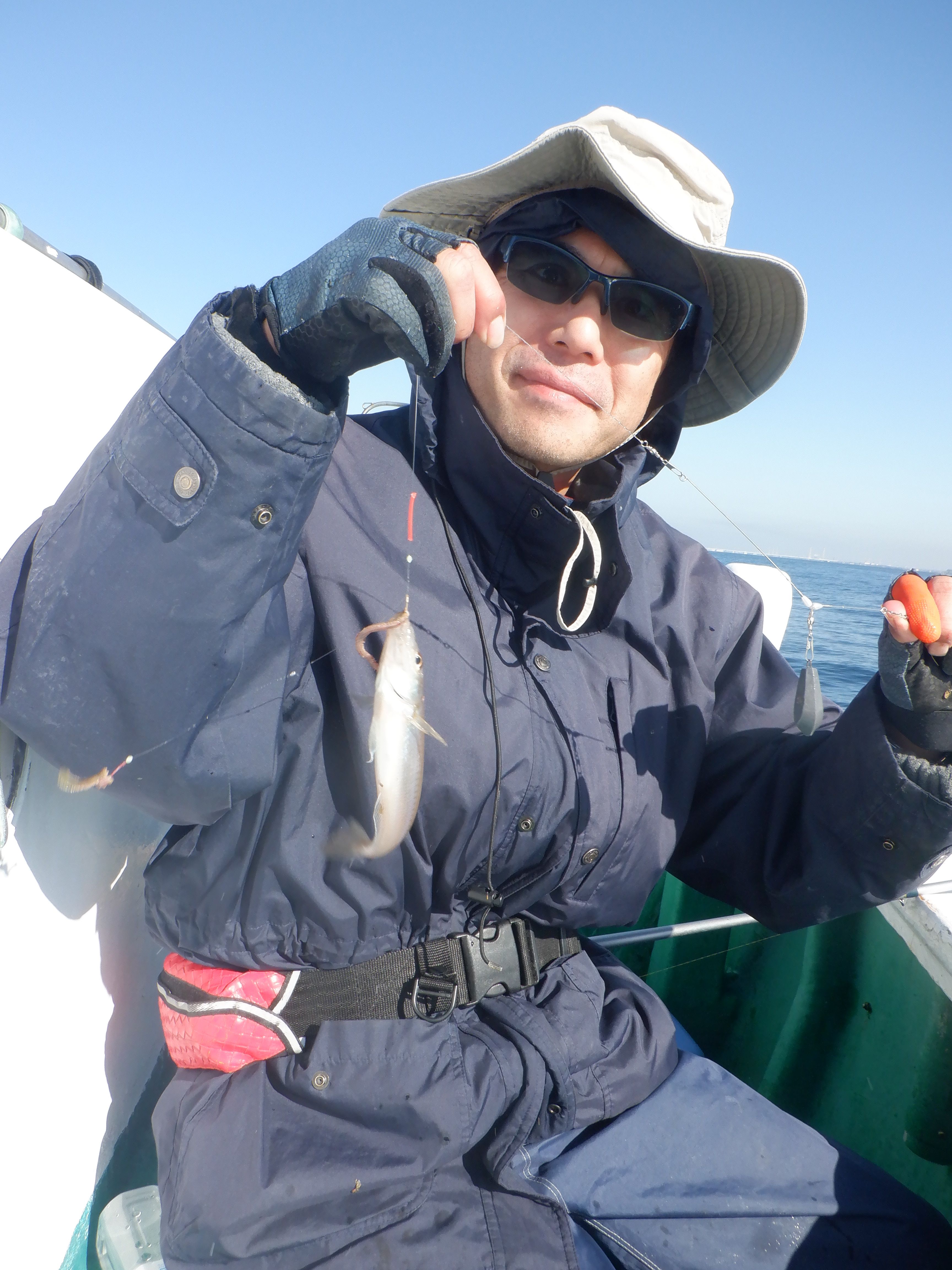 今日も寒さをあまり感じず、昼間は暖かな陽射しで、良い釣り日和でした。ボートはぜは、下流ポイントで、今日の型は小ぶりが多かったようです。釣果ノートより、和光市の塚田さん・(サイズアップ目指して移動するも、いまひとつ。〜14cmを50匹)、八潮の植竹さん・50匹、下高井戸のスーさん・93匹・トシちゃん85匹(15cmクラス各々10匹位釣れて、大変楽しかったです。今年は最後となります。お世話になり、ありがとうございました。来年も宜しくお願い致します)、←「こちらこそ、ありがとうございました。また来年、エロ男の元気な顔を、見せて下さい!」、坂戸市のタナミさん・〜13cm・121匹(今回は小ぶりがおおかったかな)。桟橋釣りでは、阿佐ヶ谷の会田です。(朝一ですぐにツ抜け。陽が昇るとピタリと止まり、早じまい)。シロギス乗合は、中ノ瀬の18m前後。良型が多く、楽しめたようです。くにもとさん・キス54匹とアナゴ1匹(大きいのが沢山釣れた!楽しかった)、川口市の西山さん・キス40匹とホウボウ3匹、越谷市の鈴木さん・キス29匹・ホウボウ1匹(大中多く、楽しめたです)。近場のはぜ乗合は、水深7〜8mで、良型がボチボチ出始めました。釣果ノートより、草加のよねじいさん・(40匹位・数不満・型まんぞく(てんぷらサイズ多数))、増田さん・58匹(前半ダメ、深場行って良かった)、新橋おやじさん・96匹(小さめ)。皆さん!ありがとうございました。明日も、お待ちしております。